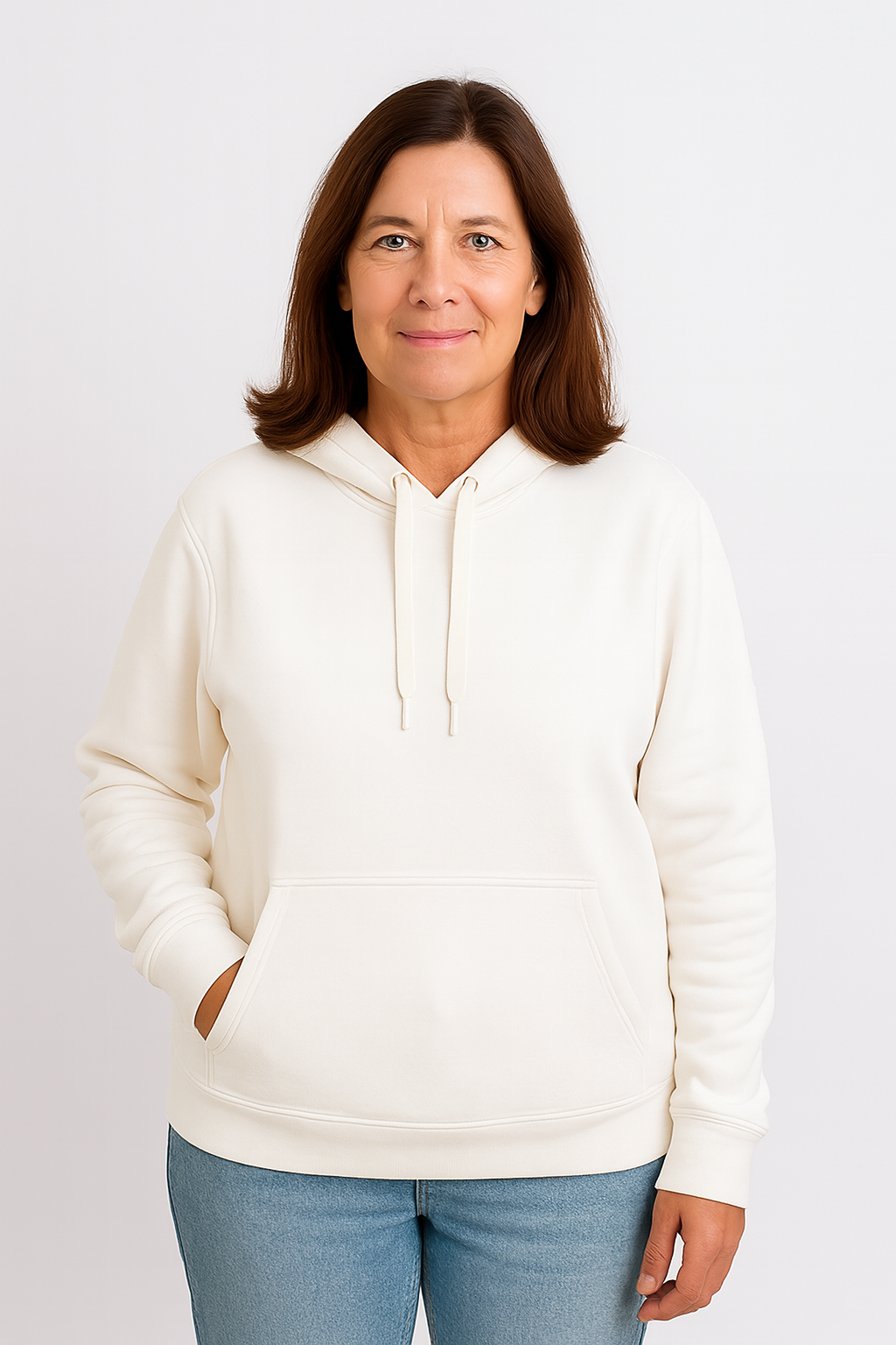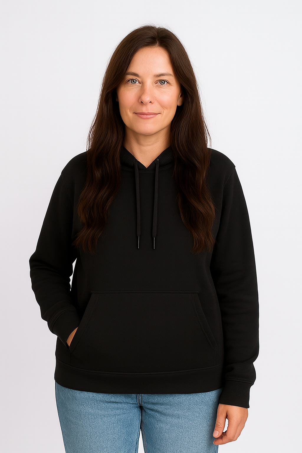 Com bolso frontal tipo canguru, capuz com cordão e acabamento em punho e barra retilínea, ele entrega caimento confortável e visual moderno. A personalização é feita com a técnica DTF (Direct to Film), que garante fidelidade de cor e excelente acabamento.